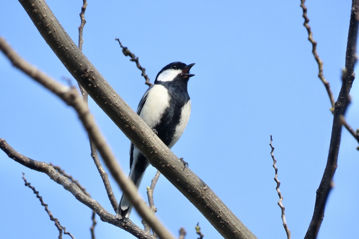 シジュウカラも梢で囀っていました。