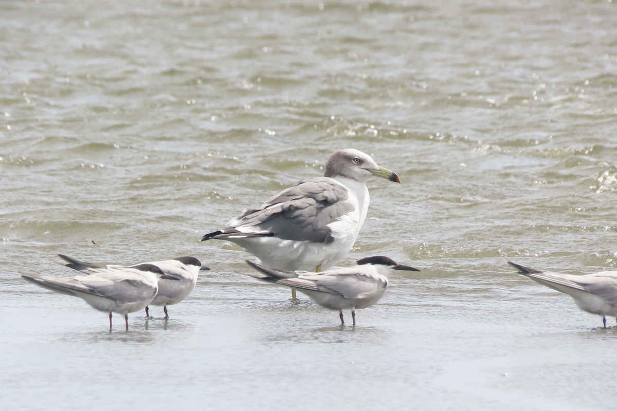 スマートなアジサシとふくよかなウミネコの体格差がすごい。笑